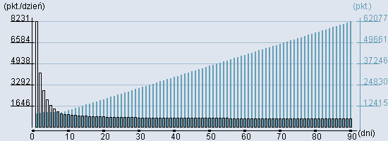 Rozkład realnego czasu hospitalizacji dla tej grupy JGP ![]() Wykres przedstawiąjacy rentowność pobytu pacjenta w zależności od ilości dni. ![]() | ||||||||||||||||||
