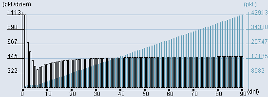 Rozkład realnego czasu hospitalizacji dla tej grupy JGP ![]() Wykres przedstawiąjacy rentowność pobytu pacjenta w zależności od ilości dni. ![]() | ||||||||||||||||||