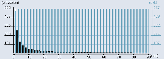 Rozkład realnego czasu hospitalizacji dla tej grupy JGP ![]() Wykres przedstawiąjacy rentowność pobytu pacjenta w zależności od ilości dni. ![]() | ||||||||||||||||||||||||||||||||||