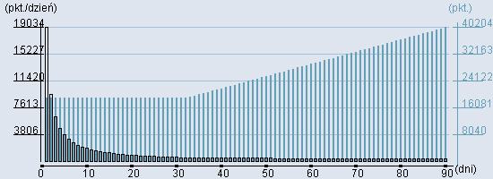 Rozkład realnego czasu hospitalizacji dla tej grupy JGP ![]() Wykres przedstawiąjacy rentowność pobytu pacjenta w zależności od ilości dni. ![]() | ||||||||||||||||||||||||||||||||||||||||||||||