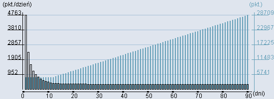 Rozkład realnego czasu hospitalizacji dla tej grupy JGP ![]() Wykres przedstawiąjacy rentowność pobytu pacjenta w zależności od ilości dni. ![]() | |||||||||||||||||||||||||||||||||||||||||