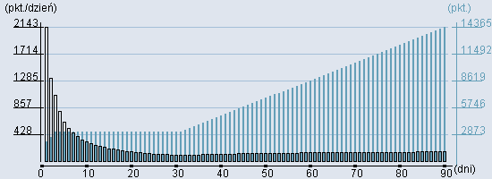 Rozkład realnego czasu hospitalizacji dla tej grupy JGP ![]() Wykres przedstawiąjacy rentowność pobytu pacjenta w zależności od ilości dni. ![]() | ||||||||||||||||||||||||