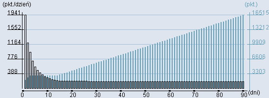 Rozkład realnego czasu hospitalizacji dla tej grupy JGP ![]() Wykres przedstawiąjacy rentowność pobytu pacjenta w zależności od ilości dni. ![]() | |||||||||||||||||||