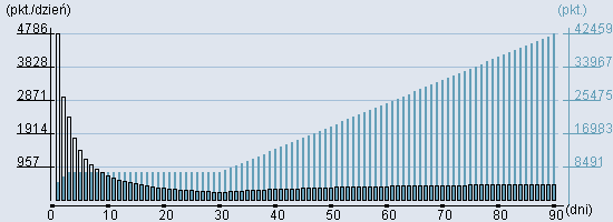 Rozkład realnego czasu hospitalizacji dla tej grupy JGP ![]() Wykres przedstawiąjacy rentowność pobytu pacjenta w zależności od ilości dni. ![]() | |||||||||||||||||||