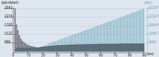 Rozkład realnego czasu hospitalizacji dla tej grupy JGP ![]() Wykres przedstawiąjacy rentowność pobytu pacjenta w zależności od ilości dni. ![]() | ||||||||||||||||||||||||||