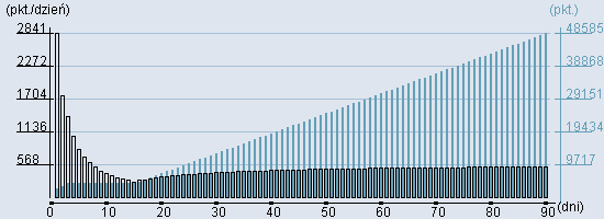 Rozkład realnego czasu hospitalizacji dla tej grupy JGP ![]() Wykres przedstawiąjacy rentowność pobytu pacjenta w zależności od ilości dni. ![]() | ||||||||||||||||||