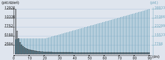 Rozkład realnego czasu hospitalizacji dla tej grupy JGP ![]() Wykres przedstawiąjacy rentowność pobytu pacjenta w zależności od ilości dni. ![]() | ||||||||||||||||||
