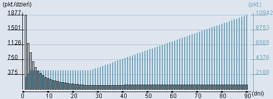 Rozkład realnego czasu hospitalizacji dla tej grupy JGP ![]() Wykres przedstawiąjacy rentowność pobytu pacjenta w zależności od ilości dni. ![]() | ||||||||||||||||||||||||