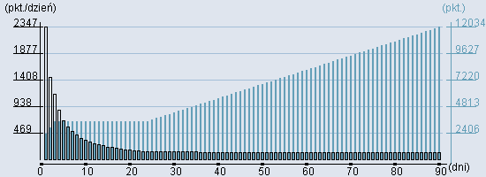 Rozkład realnego czasu hospitalizacji dla tej grupy JGP ![]() Wykres przedstawiąjacy rentowność pobytu pacjenta w zależności od ilości dni. ![]() | ||||||||||||||||||