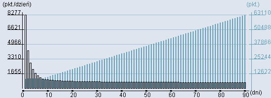Rozkład realnego czasu hospitalizacji dla tej grupy JGP ![]() Wykres przedstawiąjacy rentowność pobytu pacjenta w zależności od ilości dni. ![]() | ||||||||||||||||||