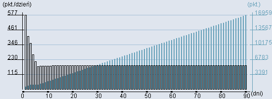Rozkład realnego czasu hospitalizacji dla tej grupy JGP ![]() Wykres przedstawiąjacy rentowność pobytu pacjenta w zależności od ilości dni. ![]() | ||||||||||||||||||
