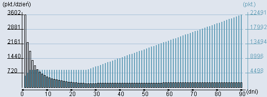 Rozkład realnego czasu hospitalizacji dla tej grupy JGP ![]() Wykres przedstawiąjacy rentowność pobytu pacjenta w zależności od ilości dni. ![]() | |||||||||||||||||||