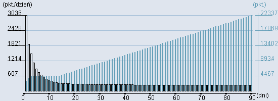 Rozkład realnego czasu hospitalizacji dla tej grupy JGP ![]() Wykres przedstawiąjacy rentowność pobytu pacjenta w zależności od ilości dni. ![]() | ||||||||||||||||||||||||||||
