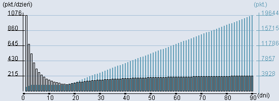 Rozkład realnego czasu hospitalizacji dla tej grupy JGP ![]() Wykres przedstawiąjacy rentowność pobytu pacjenta w zależności od ilości dni. ![]() | ||||||||||||||||||