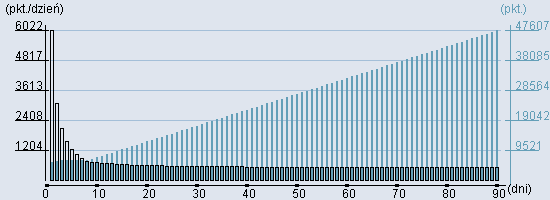 Rozkład realnego czasu hospitalizacji dla tej grupy JGP ![]() Wykres przedstawiąjacy rentowność pobytu pacjenta w zależności od ilości dni. ![]() |