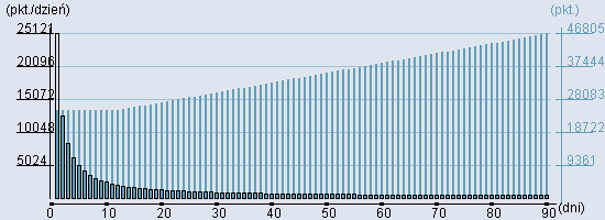Rozkład realnego czasu hospitalizacji dla tej grupy JGP ![]() Wykres przedstawiąjacy rentowność pobytu pacjenta w zależności od ilości dni. ![]() | ||||||||||||||||||||