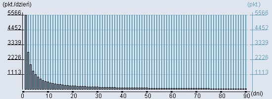 Rozkład realnego czasu hospitalizacji dla tej grupy JGP ![]() Wykres przedstawiąjacy rentowność pobytu pacjenta w zależności od ilości dni. ![]() | |||||||||||||||||||||||||||
