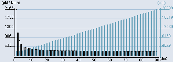 Rozkład realnego czasu hospitalizacji dla tej grupy JGP ![]() Wykres przedstawiąjacy rentowność pobytu pacjenta w zależności od ilości dni. ![]() | ||||||||||||||||||||||||||||||||||