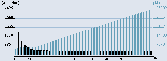 Rozkład realnego czasu hospitalizacji dla tej grupy JGP ![]() Wykres przedstawiąjacy rentowność pobytu pacjenta w zależności od ilości dni. ![]() | ||||||||||||||||||||