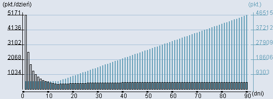 Rozkład realnego czasu hospitalizacji dla tej grupy JGP ![]() Wykres przedstawiąjacy rentowność pobytu pacjenta w zależności od ilości dni. ![]() | ||||||||||||||||||||||||||||