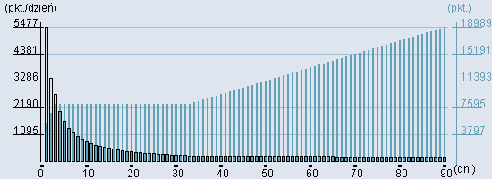 Rozkład realnego czasu hospitalizacji dla tej grupy JGP ![]() Wykres przedstawiąjacy rentowność pobytu pacjenta w zależności od ilości dni. ![]() | ||||||||||||||||||||||||