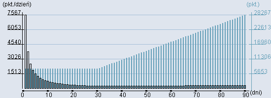 Rozkład realnego czasu hospitalizacji dla tej grupy JGP ![]() Wykres przedstawiąjacy rentowność pobytu pacjenta w zależności od ilości dni. ![]() | ||||||||||||||||||