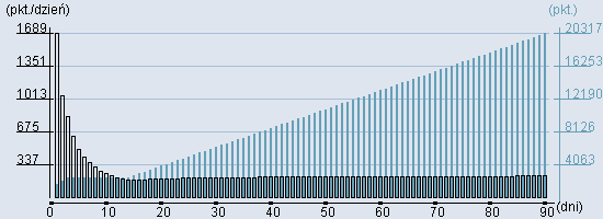 Rozkład realnego czasu hospitalizacji dla tej grupy JGP ![]() Wykres przedstawiąjacy rentowność pobytu pacjenta w zależności od ilości dni. ![]() | ||||||||||||||||||