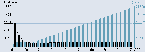 Rozkład realnego czasu hospitalizacji dla tej grupy JGP ![]() Wykres przedstawiąjacy rentowność pobytu pacjenta w zależności od ilości dni. ![]() | ||||||||||||||||||||||||||