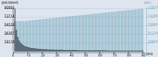 Rozkład realnego czasu hospitalizacji dla tej grupy JGP ![]() Wykres przedstawiąjacy rentowność pobytu pacjenta w zależności od ilości dni. ![]() | |||||||||||||||||