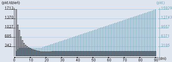 Rozkład realnego czasu hospitalizacji dla tej grupy JGP ![]() Wykres przedstawiąjacy rentowność pobytu pacjenta w zależności od ilości dni. ![]() | ||||||||||||||||||