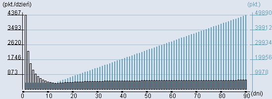 Rozkład realnego czasu hospitalizacji dla tej grupy JGP ![]() Wykres przedstawiąjacy rentowność pobytu pacjenta w zależności od ilości dni. ![]() | ||||||||||||||||||