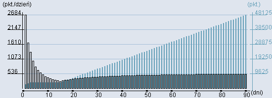 Rozkład realnego czasu hospitalizacji dla tej grupy JGP ![]() Wykres przedstawiąjacy rentowność pobytu pacjenta w zależności od ilości dni. ![]() | ||||||||||||||||||||||||