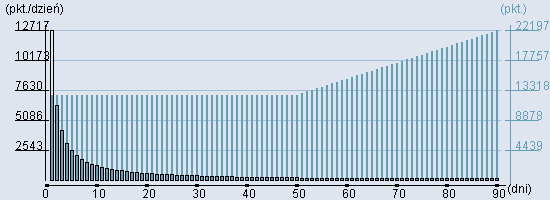 Rozkład realnego czasu hospitalizacji dla tej grupy JGP ![]() Wykres przedstawiąjacy rentowność pobytu pacjenta w zależności od ilości dni. ![]() | ||||||||||||||||||||||||