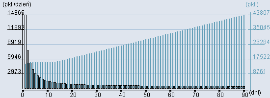 Rozkład realnego czasu hospitalizacji dla tej grupy JGP ![]() Wykres przedstawiąjacy rentowność pobytu pacjenta w zależności od ilości dni. ![]() | |||||||||||||||||||||||||||||||||||||||||||