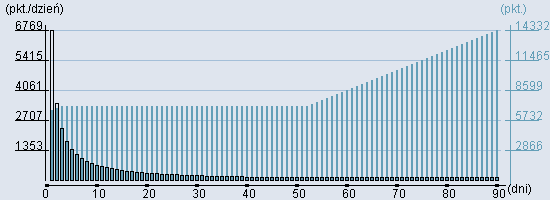 Rozkład realnego czasu hospitalizacji dla tej grupy JGP ![]() Wykres przedstawiąjacy rentowność pobytu pacjenta w zależności od ilości dni. ![]() | |||||||||||||||||||||||||||||||||||||||