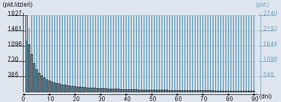 Rozkład realnego czasu hospitalizacji dla tej grupy JGP ![]() Wykres przedstawiąjacy rentowność pobytu pacjenta w zależności od ilości dni. ![]() | |||||||||||||||||||