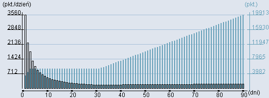 Rozkład realnego czasu hospitalizacji dla tej grupy JGP ![]() Wykres przedstawiąjacy rentowność pobytu pacjenta w zależności od ilości dni. ![]() | ||||||||||||||||||||||||