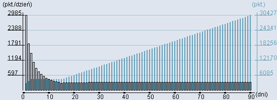 Rozkład realnego czasu hospitalizacji dla tej grupy JGP ![]() Wykres przedstawiąjacy rentowność pobytu pacjenta w zależności od ilości dni. ![]() | |||||||||||||||||||