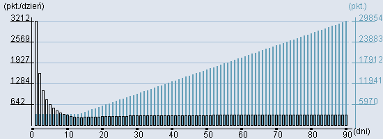 Rozkład realnego czasu hospitalizacji dla tej grupy JGP ![]() Wykres przedstawiąjacy rentowność pobytu pacjenta w zależności od ilości dni. ![]() | ||||||||||||||||||||||