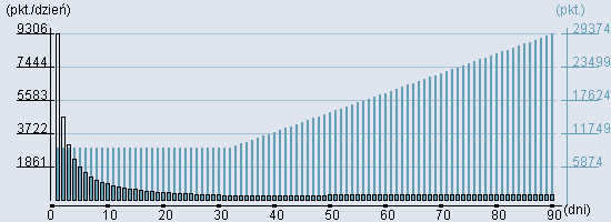 Rozkład realnego czasu hospitalizacji dla tej grupy JGP ![]() Wykres przedstawiąjacy rentowność pobytu pacjenta w zależności od ilości dni. ![]() | ||||||||||||||||||||||