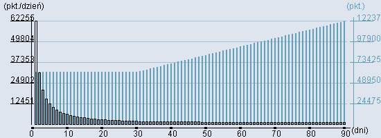 Rozkład realnego czasu hospitalizacji dla tej grupy JGP ![]() Wykres przedstawiąjacy rentowność pobytu pacjenta w zależności od ilości dni. ![]() | ||||||||||||||||||||||||||