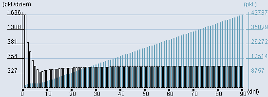 Rozkład realnego czasu hospitalizacji dla tej grupy JGP ![]() Wykres przedstawiąjacy rentowność pobytu pacjenta w zależności od ilości dni. ![]() | |||||||||||||||||||||||||