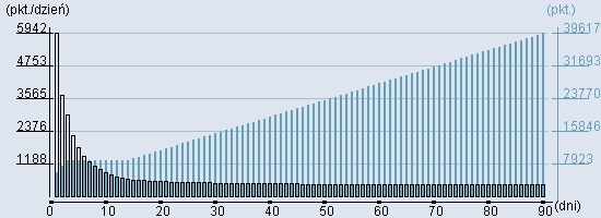 Rozkład realnego czasu hospitalizacji dla tej grupy JGP ![]() Wykres przedstawiąjacy rentowność pobytu pacjenta w zależności od ilości dni. ![]() | ||||||||||||||||||||