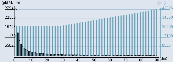 Rozkład realnego czasu hospitalizacji dla tej grupy JGP ![]() Wykres przedstawiąjacy rentowność pobytu pacjenta w zależności od ilości dni. ![]() | |||||||||||||||||||||||