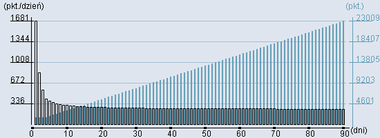 Rozkład realnego czasu hospitalizacji dla tej grupy JGP ![]() Wykres przedstawiąjacy rentowność pobytu pacjenta w zależności od ilości dni. ![]() | ||||||||||||||||||