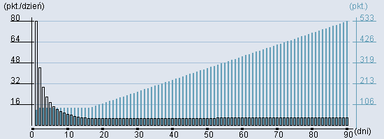 Rozkład realnego czasu hospitalizacji dla tej grupy JGP ![]() Wykres przedstawiąjacy rentowność pobytu pacjenta w zależności od ilości dni. ![]() | ||||||||||||||||||||||||||||||||