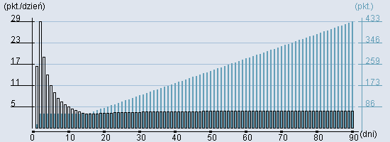 Rozkład realnego czasu hospitalizacji dla tej grupy JGP ![]() Wykres przedstawiąjacy rentowność pobytu pacjenta w zależności od ilości dni. ![]() | |||||||||||||||||||||