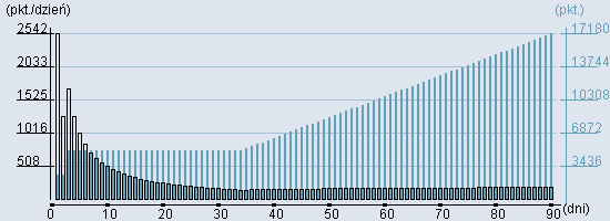 Rozkład realnego czasu hospitalizacji dla tej grupy JGP ![]() Wykres przedstawiąjacy rentowność pobytu pacjenta w zależności od ilości dni. ![]() | |||||||||||||||||||