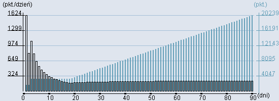 Rozkład realnego czasu hospitalizacji dla tej grupy JGP ![]() Wykres przedstawiąjacy rentowność pobytu pacjenta w zależności od ilości dni. ![]() | ||||||||||||||||||