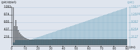 Rozkład realnego czasu hospitalizacji dla tej grupy JGP ![]() Wykres przedstawiąjacy rentowność pobytu pacjenta w zależności od ilości dni. ![]() | ||||||||||||||||||||||||